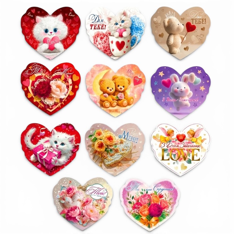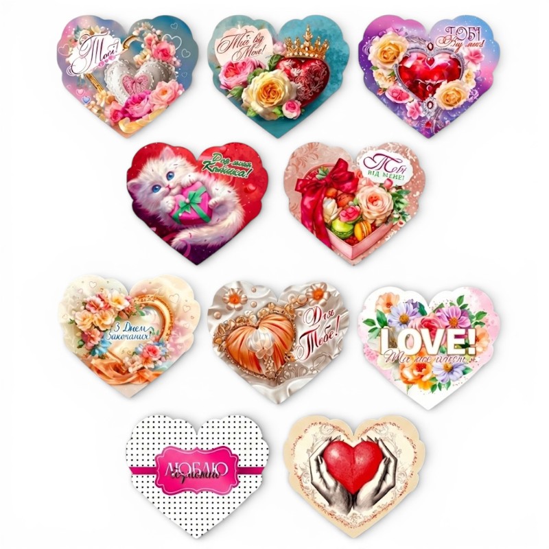 Валентинки 97,5 х 85 мм.(микс). Плотность 215 гр. Красивая и качественная валентинка — это самый простой и искренний способ выразить свои чувства.В ней достаточно места, чтобы ваши слова любви не теснились, а выглядели красиво и аккуратно. Идеально подходит к букету роз, коробке конфет или как самостоятельный знак внимания. Плотность картона 215 г/м² обеспечивает приятные тактильные ощущения. Открытка держит форму и выглядит премиально.