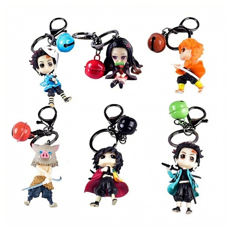 Фигури-брелок из аниме "Клинок, рассекающий демонов" Высота: около 6-7 см. Каждый брелок оснащен металлическим кольцом и застежкой-карабином для удобного крепления. Подходят в качестве аксессуаров для ключей, сумок.
