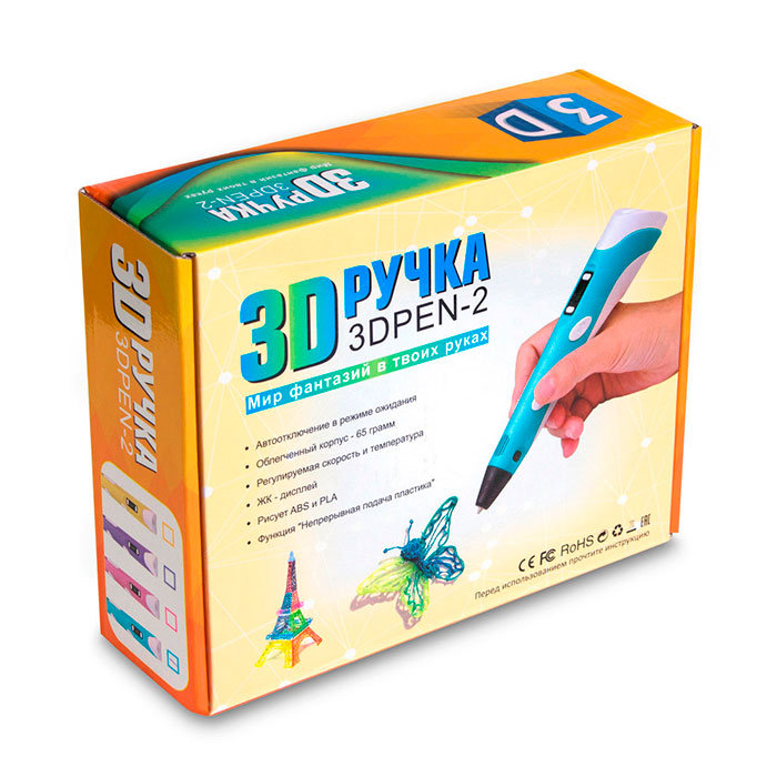 Ручка для моделирования пластиком с LCD дисплеем. В набор входит: ручка, подставка, 1 комплект стержней, инструкция