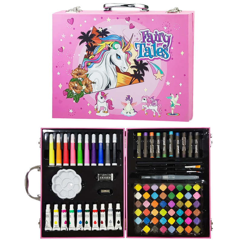 Набор для творчества 85 предметов "Единорог" в картонном чемоданчике. Яркий и практичный набор для рисования и творчества — отличный подарок для детей и взрослых, которые любят создавать красивые рисунки и пробовать разные художественные техники. Всё необходимое для рисования, раскрашивания и экспериментов с цветом собрано в одном наборе.