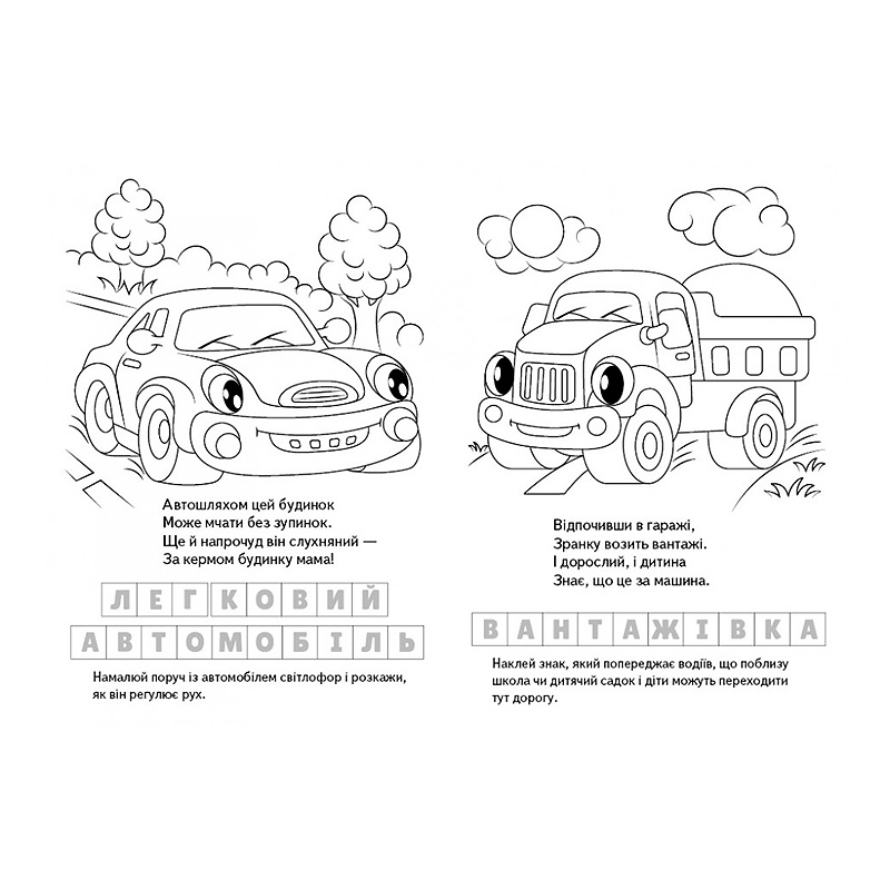 Раскраска . Загадки с наклейками "Машинки" 10 стр. (укр.)