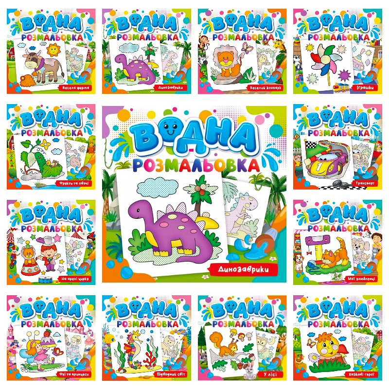 Раскраска водная 240х230 мм.,12 стр. (укр.)