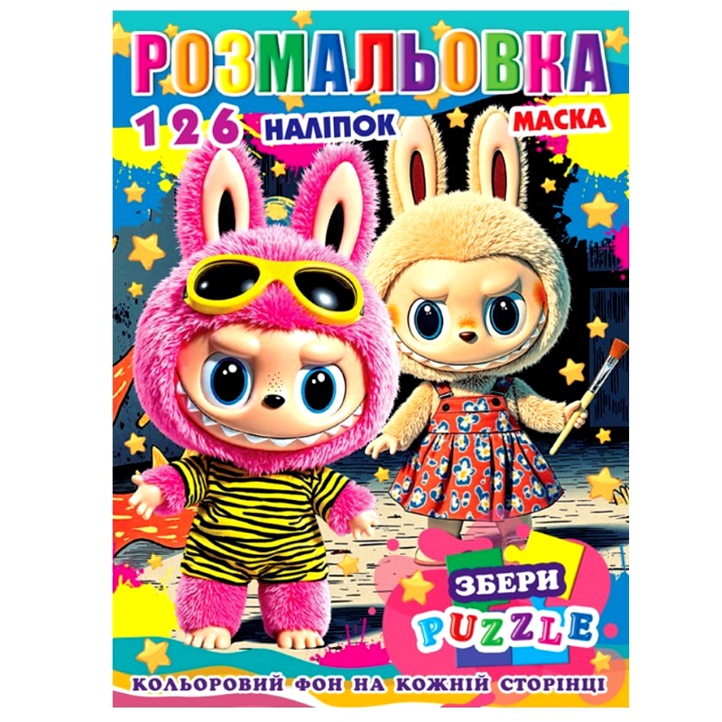 Раскраска с наклейками А4, 126 наклеек P30-761 (укр.), 10 стр. Раскраска включает 10 страниц и 126 ярких наклеек, которые помогут сделать процесс творчества еще более увлекательным. Эта раскраска не только развивает воображение и творческие навыки ребенка, но и тренирует мелкую моторику. На каждой странице цветной фон, пазл, маска