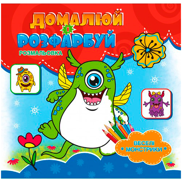 Раскраска дорисуй-раскрась "ВЕСЕЛІ МОНСТРИКИ" (укр.)