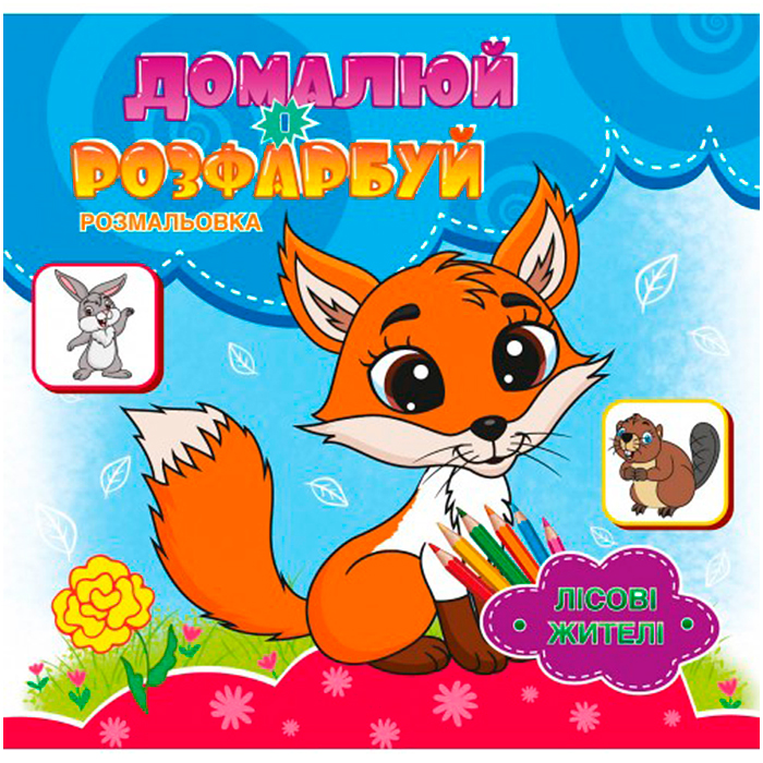 Раскраска дорисуй-раскрась "ЛІСОВІ ЖИТЕЛІ" (укр.)