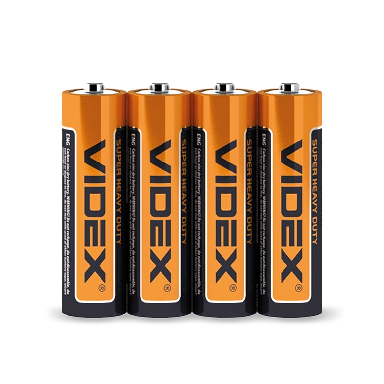 Батарейка солевая Videx R6P/AA. Напряжение: 1.5V. Cолевые элементы питания – оптимальные для работы в устройствах, не требующих большого количества энергии (пульты ДУ, электронные часы, карманные фонарики).