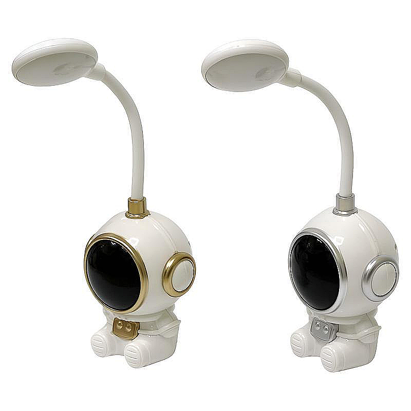 Светильник настольный аккумуляторный "Космонавт". Современный настольный светильник в виде космонавта — стильный и функциональный аксессуар для дома, офиса или детской комнаты. Лампа работает от встроенного аккумулятора и подключается через micro USB (кабель в комплекте), плавная смена цвета. Гибкая ножка позволяет легко регулировать направление света, создавая комфортное освещение в любом месте. Купить оптом настольный светильник «Космонавт» можно дешево и с доставкой по Украине — идеальный выбор для детских, офисных и креативных интерьеров.