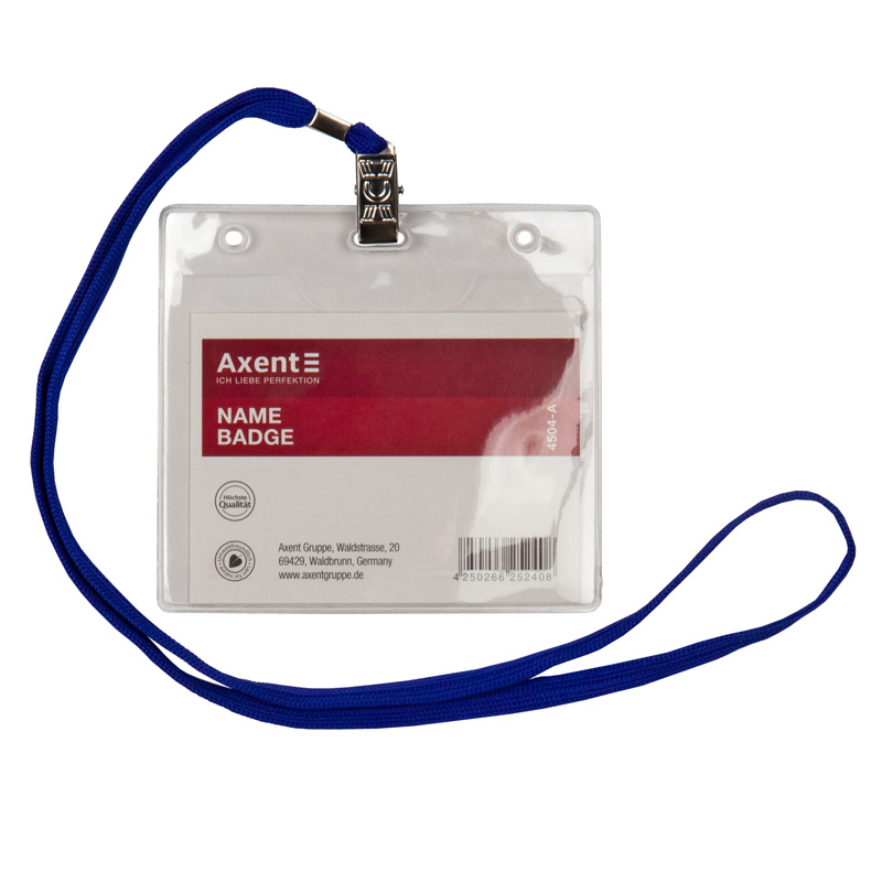 Бейдж горизонтальный, прозрачный на шнурке «Axent», 100x80 мм