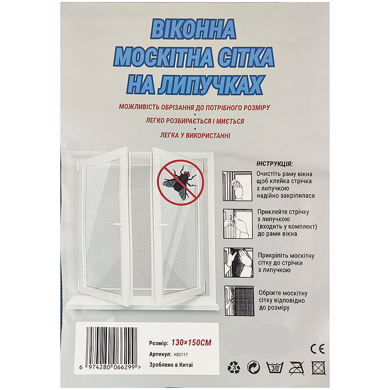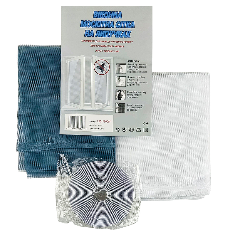 Москитная сетка на липучках 130 х 150 см. Сетка поставляется с липучками, которые позволяют легко закрепить ее на раме окна без необходимости в сложных монтажных работах или специальном инструменте. Представлена в белом и сером цветах