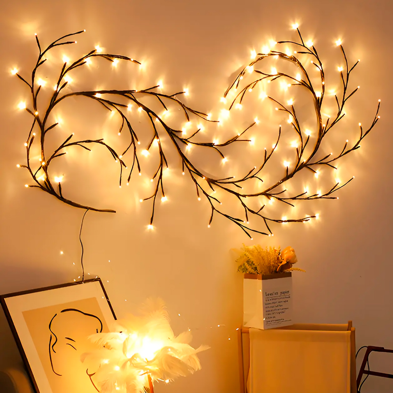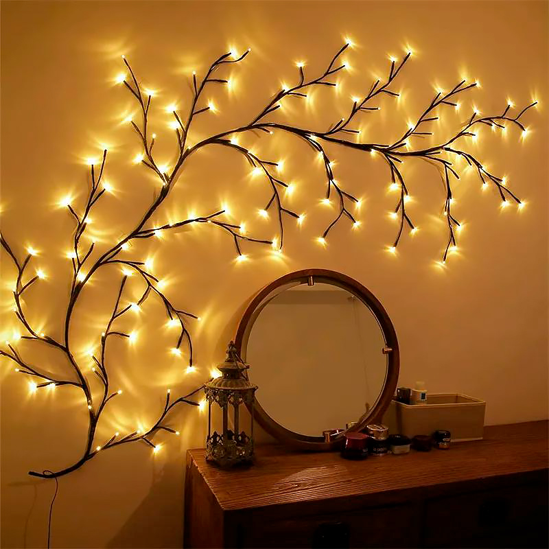 Ночник-декор «Светящаяся ветка» 2,3м, 144LED, от USB ( с креплениями) . Элегантный ночник в форме декоративной ветки — это сочетание уюта, мягкого света и современного дизайна. Светодиоды, встроенные в ветви, излучают тёплое мягкое свечение, создавая создаёт эффект мягкого, живого света и добавляет пространству уют, теплоту и современный акцент. Светящиеся ветви можно закрепить на стене, зеркале или мебели, формируя уникальный рисунок и подчеркивая стиль комнаты. Гирлянда длиной 2,3 м оснащена 144 светодиодами, которые излучают приятный тёплый свет, создавая атмосферу комфорта. В комплект входят крепления для стены, что делает установку простой и надёжной.