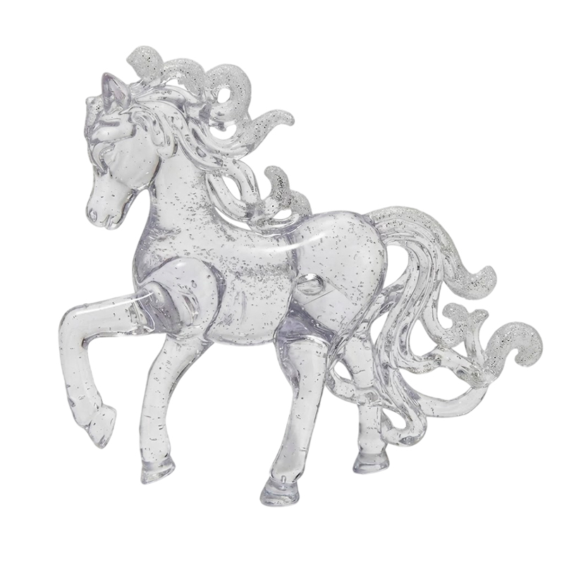 Елочная игрушка "Лошадка прозрачная" 11,5×10 см. Изящная ёлочная игрушка в форме лошади — символа 2026 года. Выполнена из прозрачного пластика Такая игрушка выглядит дорого и добавляет изысканного блеска вашей новогодней ёлке. Вы можете купить этот символ 2026 года оптом, дешево, с доставкой по Украине.