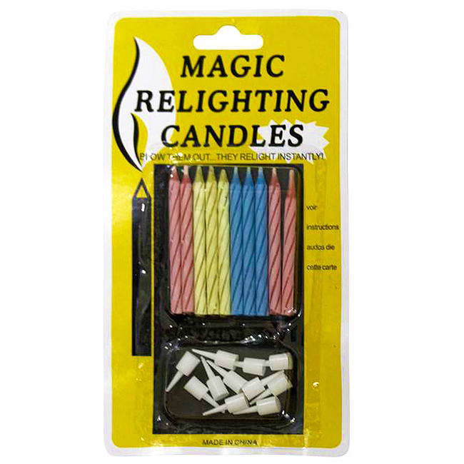 Набор свечей самовозгорающихся 5,8 см. 10 шт/уп. Отличный выбор для весёлого праздника и идеальное украшение для торта на день рождения! Эти свечи автоматически загораются снова после задувания, создавая эффект удивления и веселья. Высота каждой свечи — 5,8 см. В комплекте 10 свечей. Купить оптом самовозгорающие свечи с доставкой по Украине — в нашем магазине всегда актуальные товары для праздника!