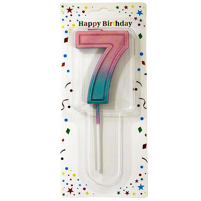 Свеча-цифра в торт «7» с градиентом и золотой поталью 7 см. Эффектная свеча в форме цифры станет ярким акцентом на праздничном торте. Градиентные переливы от розового к голубому, дополненные изящной золотой поталью, придают изделию стильный и современный вид. Высота свечи — 7 см. Это стильное украшение для торта на день рождения, юбилей или тематическую вечеринку. Идеально сочетается с другими цифрами из этой серии