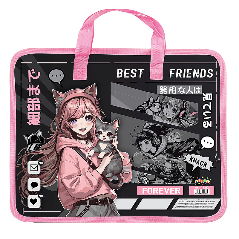 Папка пластиковая с тканевыми ручками «Best Friends». Яркая и стильная папка пластиковая с ручками — отличный выбор для школьников и подростков! С оригинальным дизайном она станет любимым аксессуаром для хранения тетрадей, рисунков и документов. Размер: 32×25,5 см — идеально подходит для формата А4. Материал: плотный и прочный пластик, не боится влаги и износа. Удобная молния по верху, сохраняет содержимое в целости, мягкие тканевые ручки — комфорт при переноске