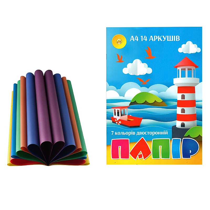 Набор цветной бумаги A4 14л/7цв. двухсторонняя