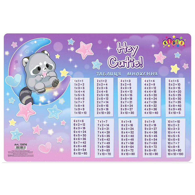 Подложка настольная с таблицей умножения 42,5 х 29 см "Raccoon". Яркая и функциональная настольная подложка поможет ребёнку сохранить порядок на рабочем месте и легко выучить таблицу умножения. Изготовлена из прочного пластика, устойчива к влаге и механическим повреждениям — идеально подходит для школьников младших классов. На поверхности — красочная таблица умножения и милый дизайн с персонажами, который обязательно понравится детям.