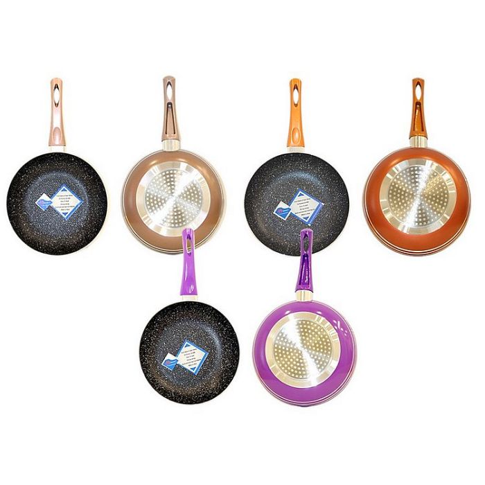 Сковорода с антипригарным покрытием .Материал : алюминий. Толщина материала 2 мм. Диаметр скороводы 24 см. Подходит для индукционных плит.