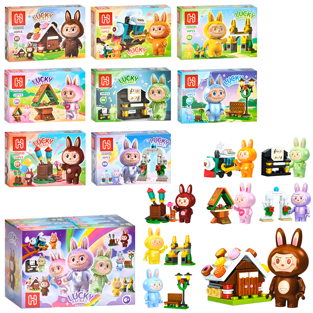 Конструктор "Lucky Labubu" №10113. Собери коллекцию ярких персонажей Lucky Labubu. Каждый набор содержит фигурку и мини-сцену: домик, пианино, фонарь, ракету, самолёт, лабораторию и многое другое. Собери все 8 наборов — и создай волшебный мир Labubu!. Количество деталей: 31–38 шт. Упакован в красочную коробку — отлично подходит для подарка. Размер коробки 14,5 х 9.5 х4 см.