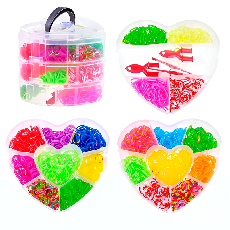 Набор резиночек для плетения в трехъярусном боксе "Сердце"
