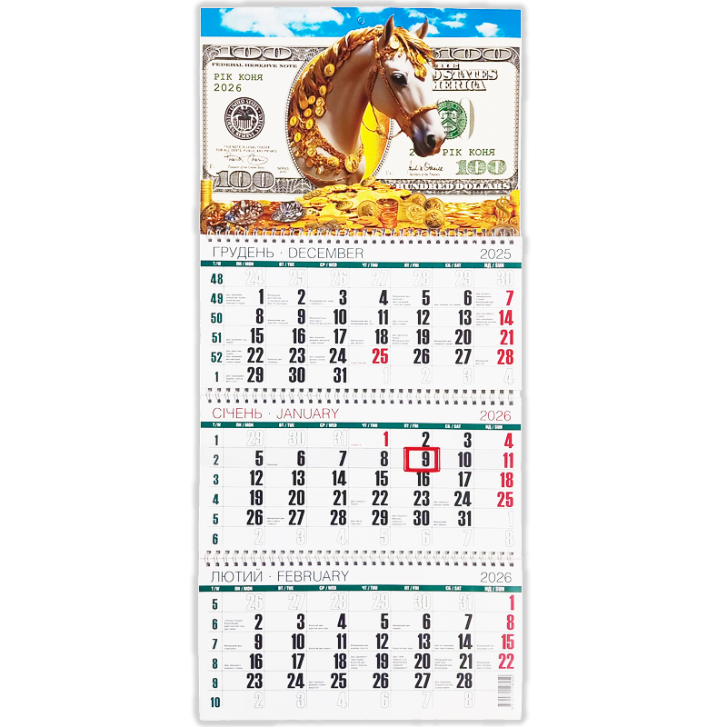 Календарь настенный на 3 пружины на 2026 год №9